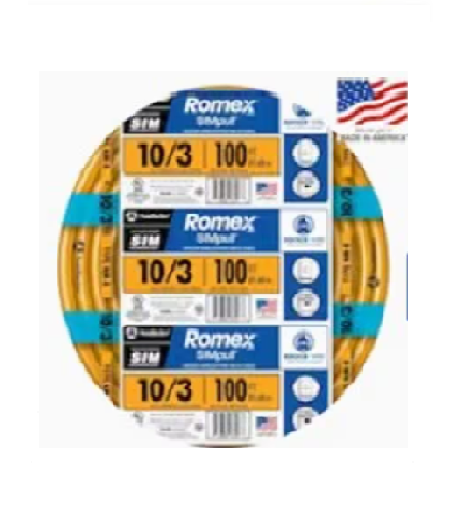 10/3 Solid Romex SIMpull CU NM-B W/G 电线#10 AWG 住宅用电线,用于插座、开关和其他负载 铜 (CU) 导体 10 号规格具有橙色编码护套,用于识别尺寸10/3 Solid Romex SIMpull CU NM-B W/G 电线 -