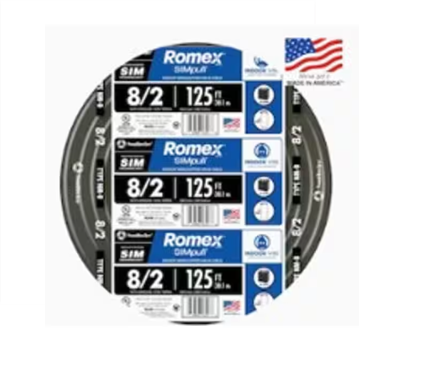 8/3 Stranded Romex SIMpull CU NM-B W/G 电线#8 AWG 住宅用电线,用于插座、开关和其他负载 铜 (CU) 导体 8 号规格具有黑色颜色编码护套,用于识别尺寸。8/3 Stranded Romex SIMpull CU NM-B W/G 电线 -
