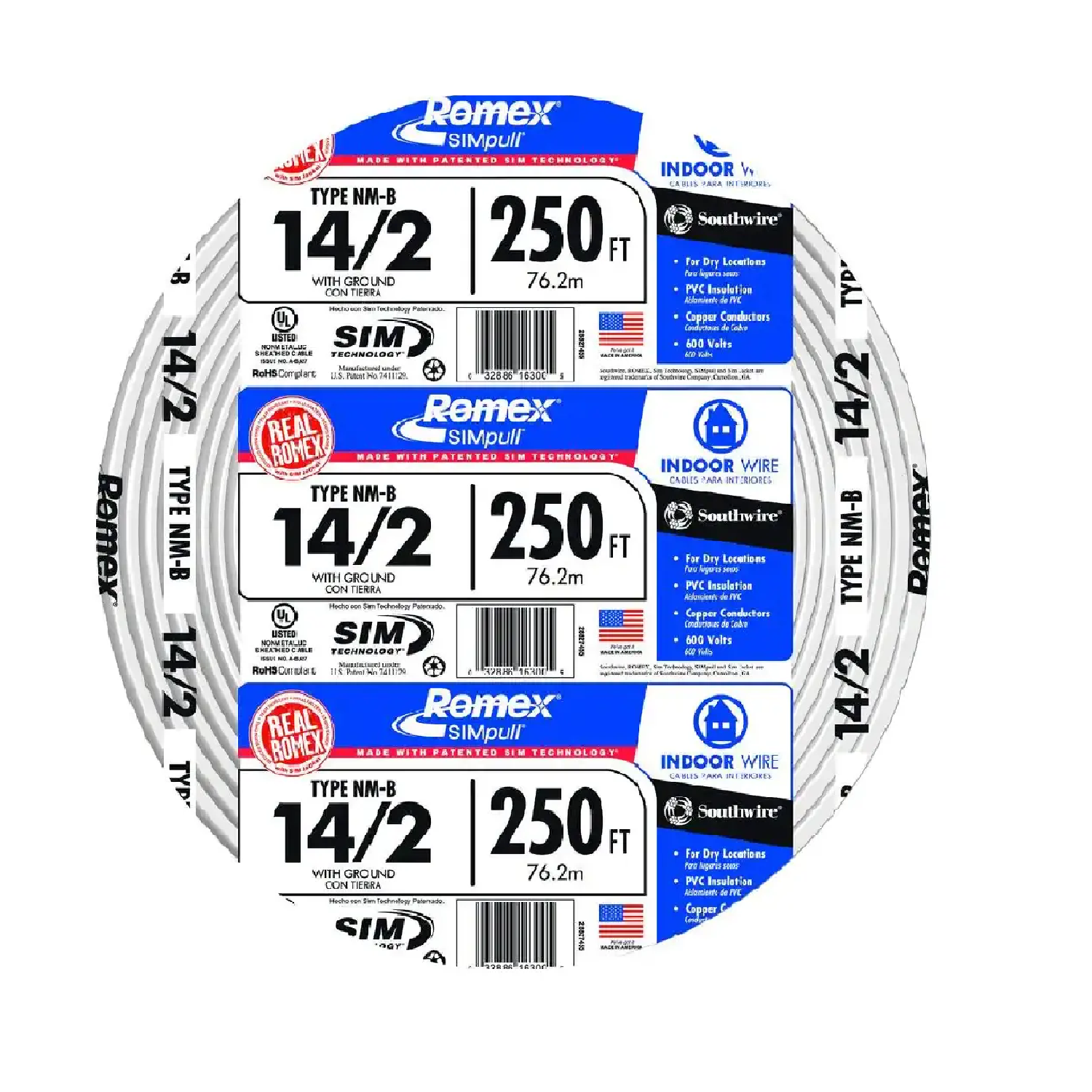 14/2 White Solid CerroMax SLiPWire Copper NM-B 电线14 号室内电线,适用于住宅 可用于高达 15 安培的插座和开关 适用于干燥场所14/2 White Solid CerroMax SLiPWire Copper NM-B 电线