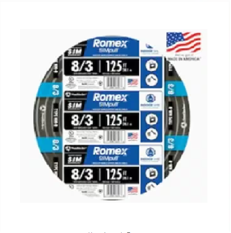 8/3 Stranded Romex SIMpull CU NM-B W/G 电线#8 AWG 住宅用电线,用于插座、开关和其他负载 铜 (CU) 导体 8 号规格具有黑色颜色编码护套,用于识别尺寸。8/3 Stranded Romex SIMpull CU NM-B W/G 电线 -