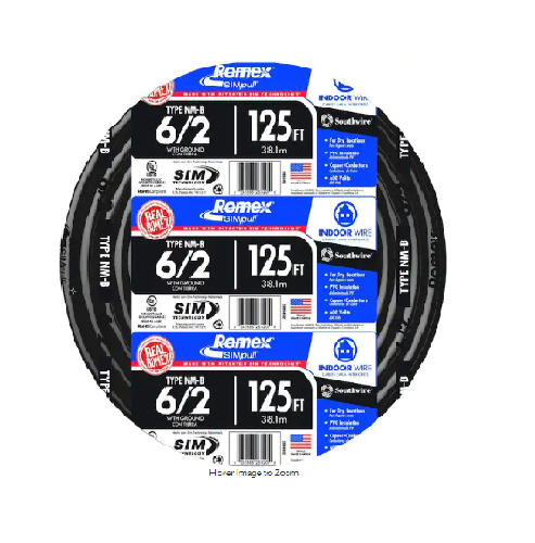 6/2 Stranded Romex SIMpull CU NM-B W/G 电线#6 AWG 住宅用电线,用于插座、开关和其他负载 铜 (CU) 导体 6 号规格具有黑色颜色编码护套,用于识别尺寸6/2 Stranded Romex SIMpull CU NM-B W/G 电线 -