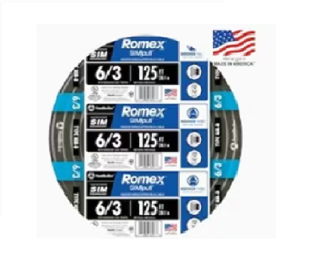 6/3 Black Stranded Romex SIMpull CU NM-B W/G 电线#6 AWG 住宅用电线,用于插座、开关和其他负载 铜 (CU) 导体 6 号规格具有黑色颜色编码护套,用于识别尺寸6/3 Black Stranded Romex SIMpull CU NM-B W/G 电线 -